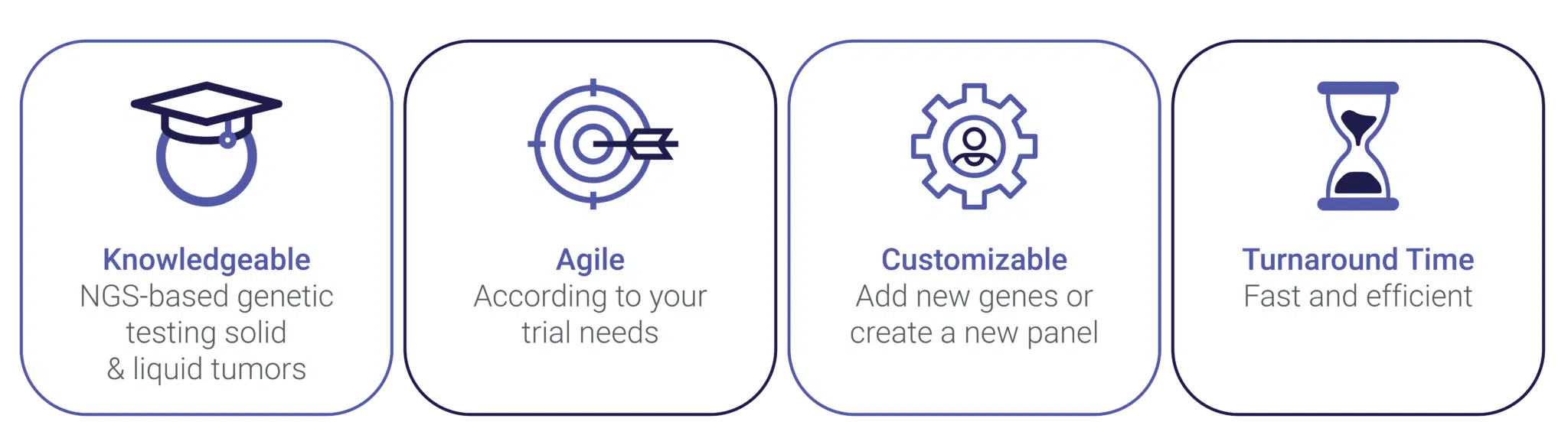 Targeting genes of interest is critical to ensure an accurate outcome for your trial. Our scientific team is dedicated to supporting the customization of your broad panel NGS assays.